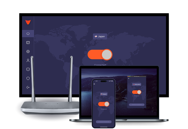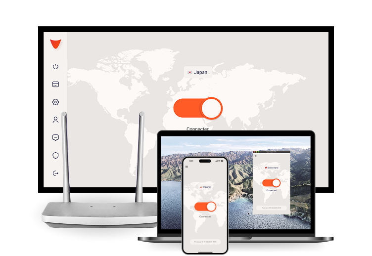 Our applications allow you to create an encrypted tunnel to our servers in the selected country with just one click.