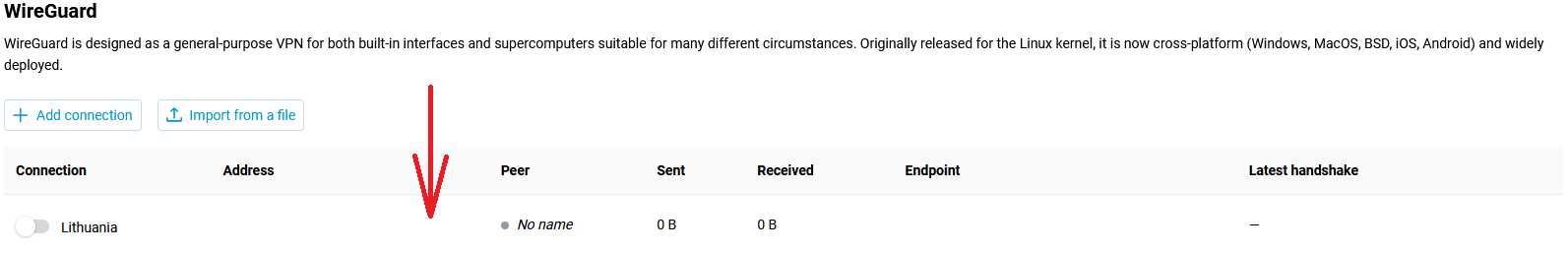 • you have an AmneziaWG configuration file in .conf format from your Personal Area (in our example, the configuration file Lithuania.conf will be used)