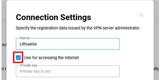 If you need the VPN to work not for all devices on your network, but only for selected ones, you can do this using Connection Policies.