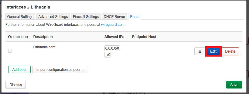 7. For the newly created Peer, click Edit:
