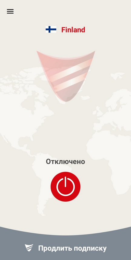 2. Если сервис не оплачен, то нажмите «Продлить подписку», чтобы оплатить сервис. После оплаты выберите локацию и нажмите на кнопку посередине.