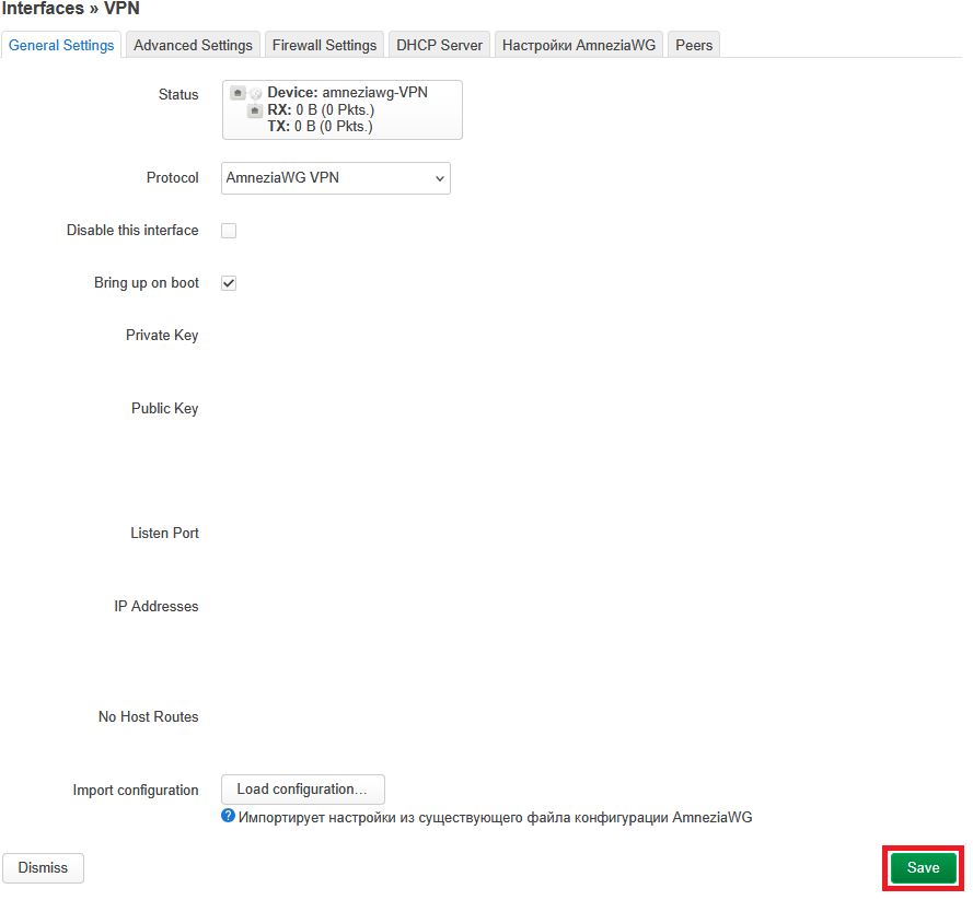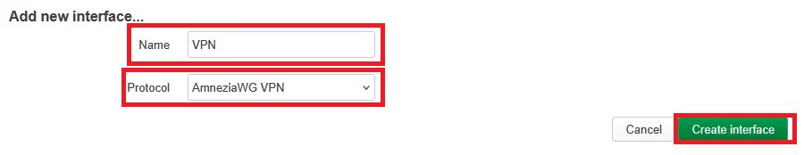 nСоздание интерфейса AmneziaWG через LuCI